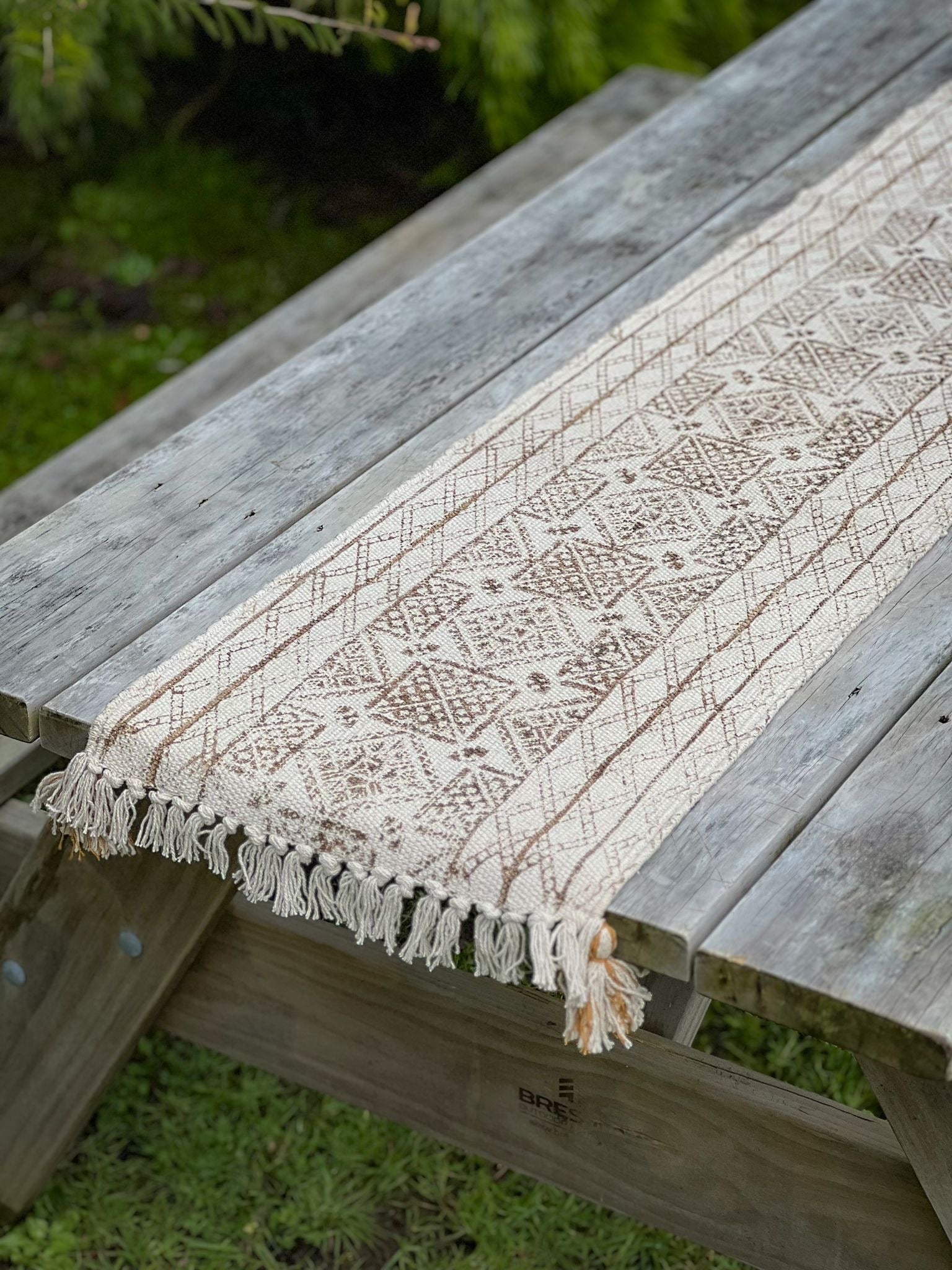 Amp up your decor with our exquisite hand block hand crafted kilim cotton table runners. Cheery prints with perfect pretty vibes which are handmade by skilled artisans and made with sustainable process.