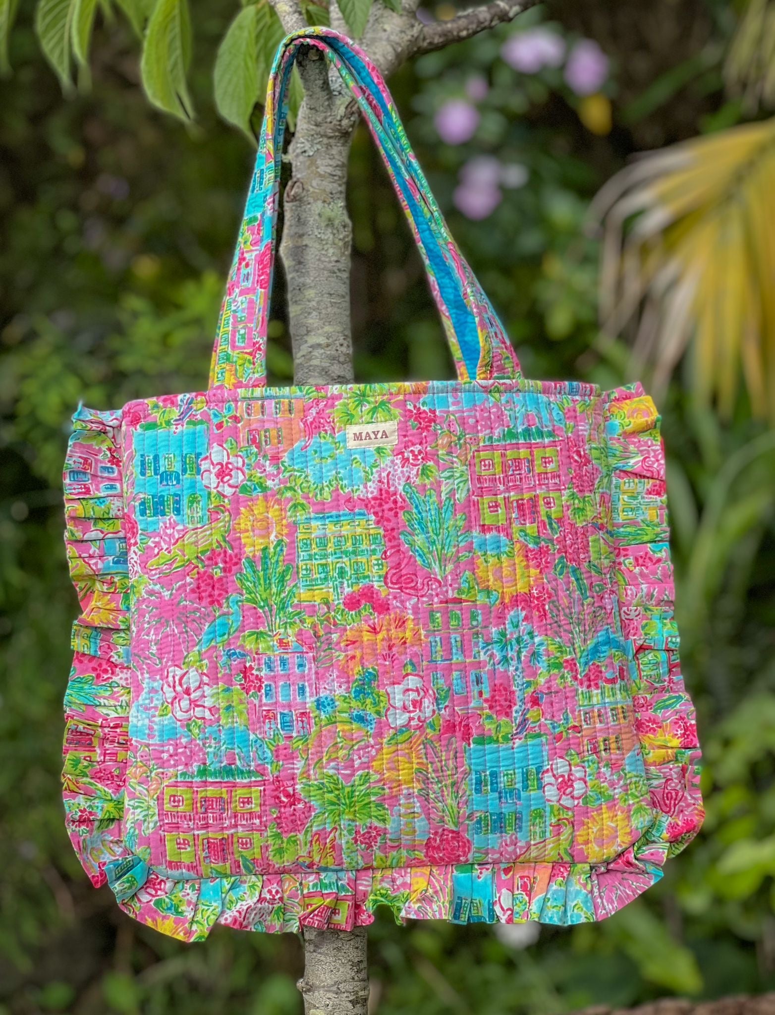 Our handmade cotton frill tote bags are the trusty sidekick for the modern maven on the go! At Maya Studio, we pride ourselves on crafting universally appreciated home goods with a practical use for the modern consumer. Our tote bags reflect a versatile aesthetic captured in a crisp and clean accessory smartly slung over your shoulder.