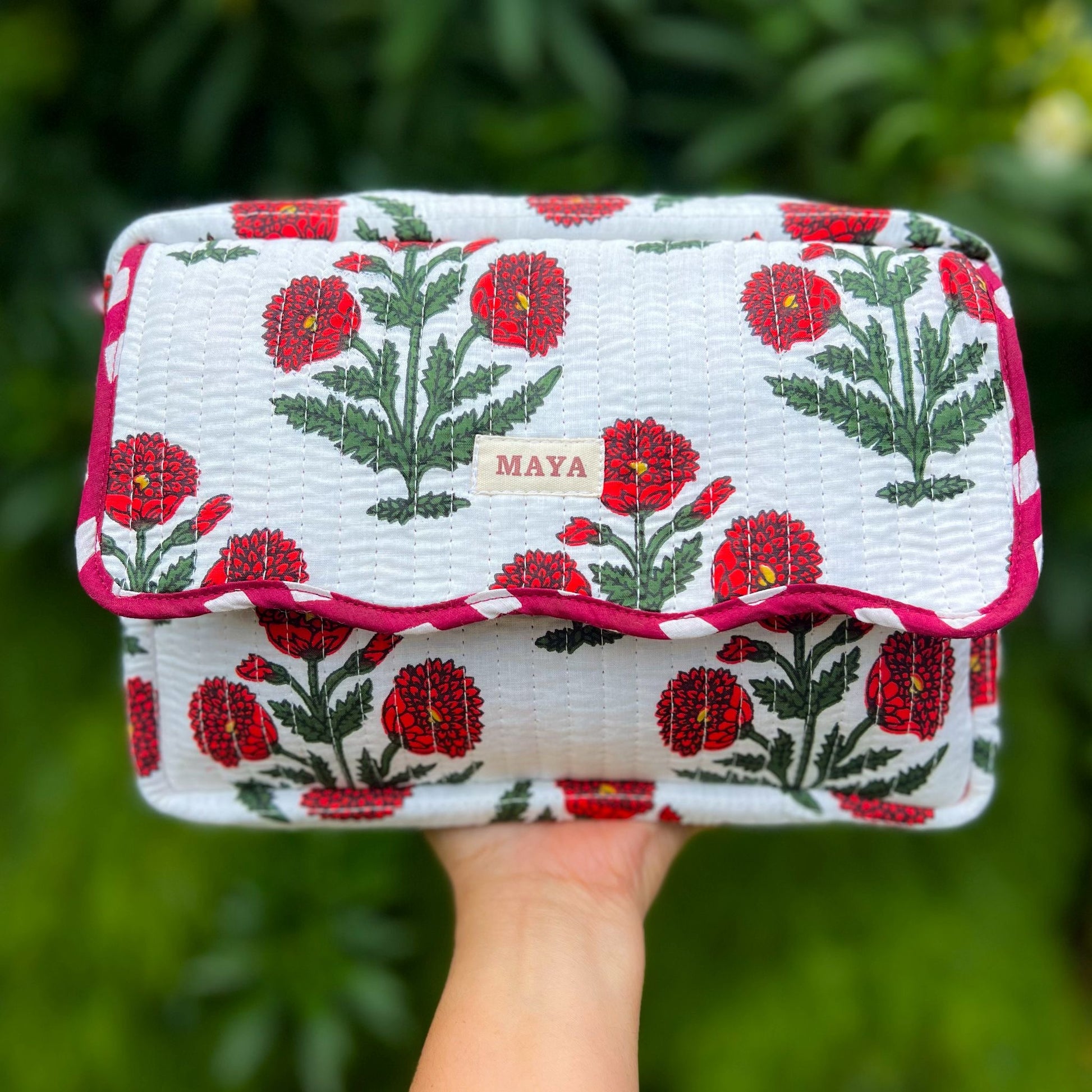 Features: 100% quilted cotton, 1 x pocket with plastic liner and 1 x pocket with cotton liner